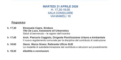 Il Collegio Geometri e G.L. di Casale Monferrato e Circondario ha dato il suo patrocinio al CORSO DI AGGIORNAMENTO IN PRESENZA GRATUITO avente oggetto "IL NUOVO REGOLAMENTO COMUNALE PER LA DISCIPLINA DEL CONTRIBUTO DI COSTRUZIONE: le modalità di autodeterminazione del contributo" organizzato dal COMUNE DI CASALE MONFERRATO in data MARTEDI' 21.04.2026 dalle h. 17.30 alle h. 19.00 presso la Sala Consiliare di Via Mameli n° 10.